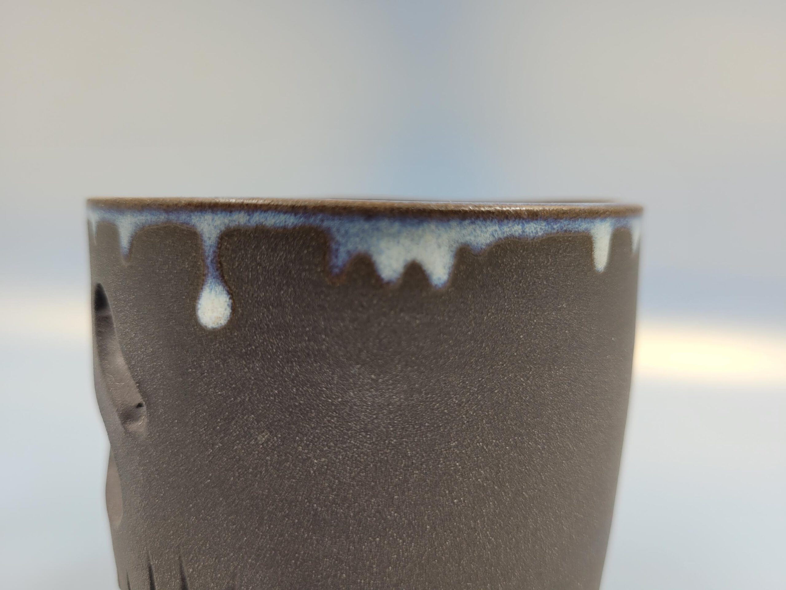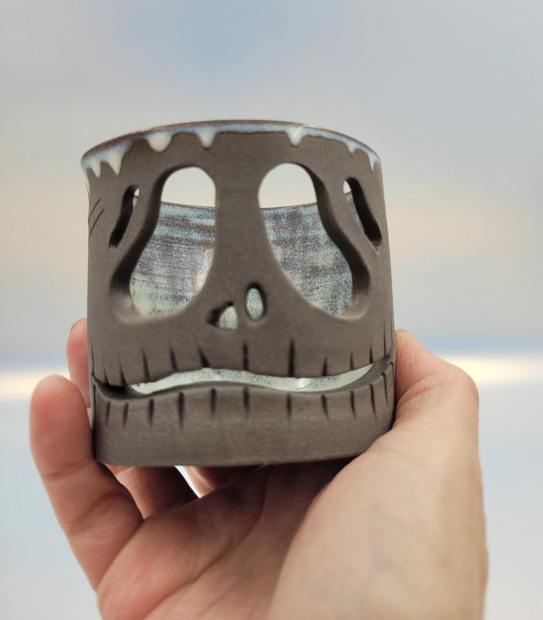 Die Tropfglasur am oberen Rand erinnert an flüssiges Wachs, die halbtransparente Glasur im Inneren verstärkt den geheimnisvollen Lichteffekt. Mit seiner handlichen Größe ist das Keramik-Windlicht ideal für Fensterbank, Regal oder deinen Halloween-Tisch.