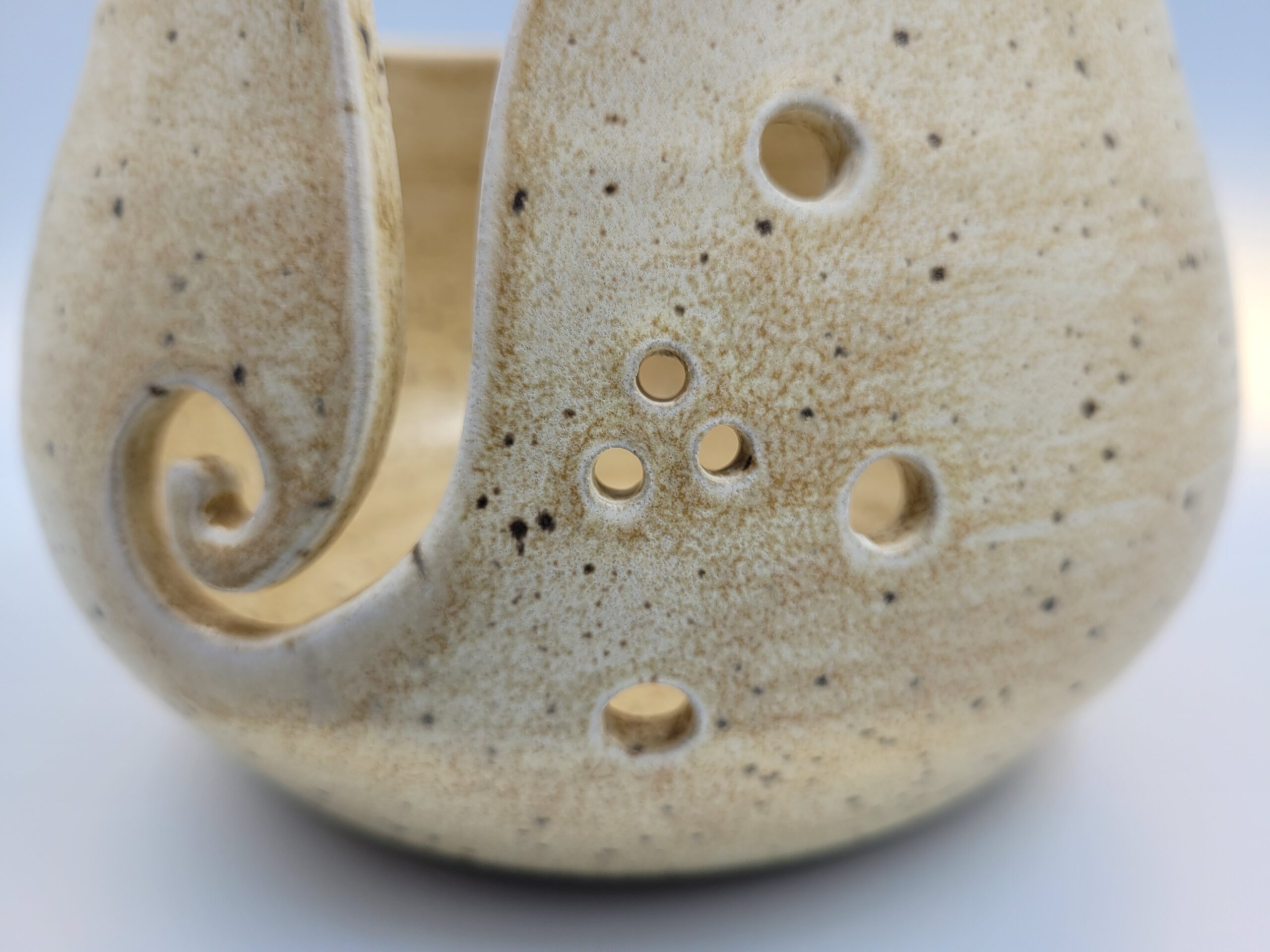 Diese hübsche Keramikschale ist der perfekte Begleiter für alle, die Stricken, Häkeln oder einfach schöne Handarbeit lieben. Mit ihrem kunstvollen, verschnörkelten Fadenlauf wird sie nicht nur zum praktischen Helfer, sondern auch zum stilvollen Highlight auf jedem Tisch!